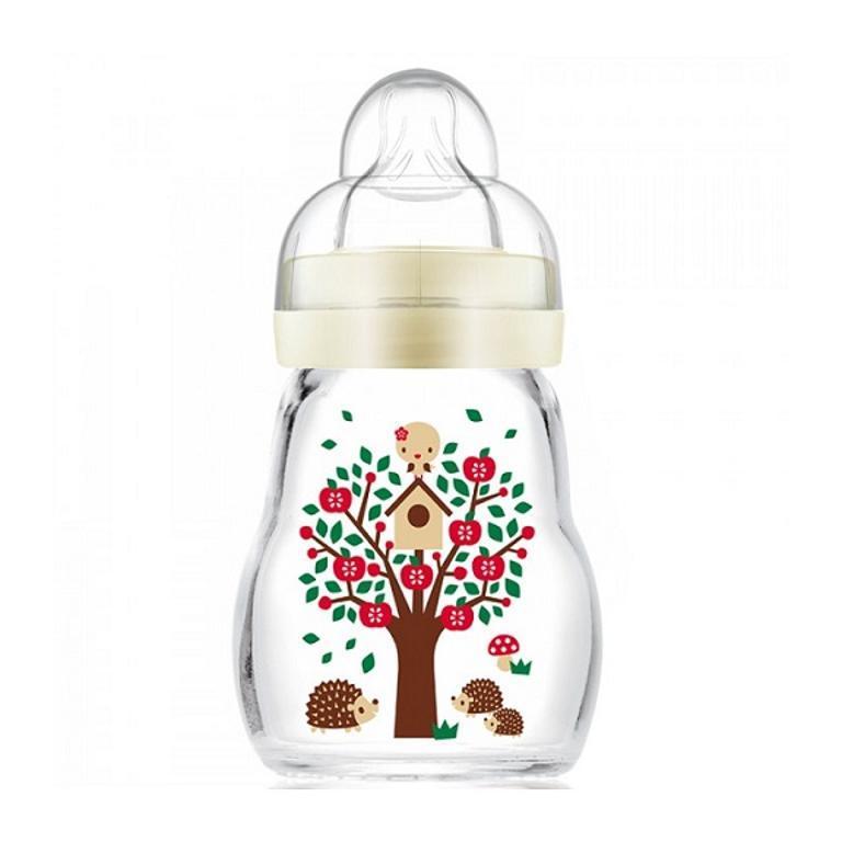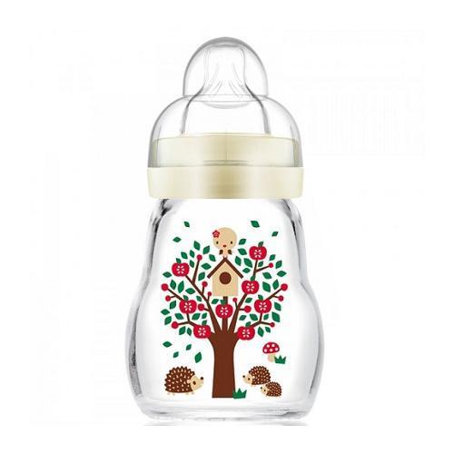 Biberon in vetro resistente alle alte temperature, che può essere riscaldato senza problemi, si raffredda velocemente, è lavabile in lavastoviglie e sterilizzabile a temperature elevate. La scala sul retro di facile lettura favorisce il dosaggio corretto.