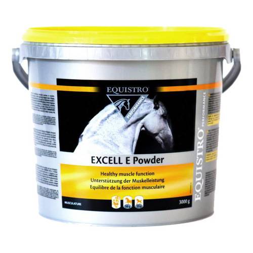 EQUISTRO EXCELL E Powder Mangime complementare in polvere, che fornisce 4 elementi chiave ad elevato valore biologico presenti in forma a rapida disponibilità per la protezione muscolare. Fornisce il necessario supporto all’integrità della cellula muscolare per mezzo della combinazione di elementi ad azione antiossidante.